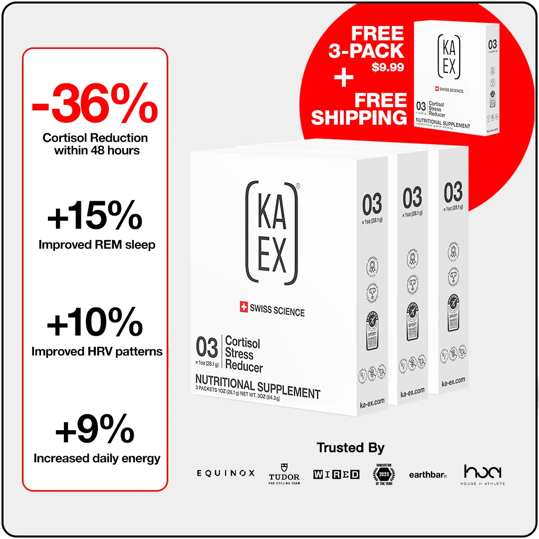 No. KA‑EX® is 100% free from stimulants like caffeine or taurine. Instead, it contains natural ingredients that support recovery, sleep, and overall well-being without disrupting cortisol or sleep cycles.